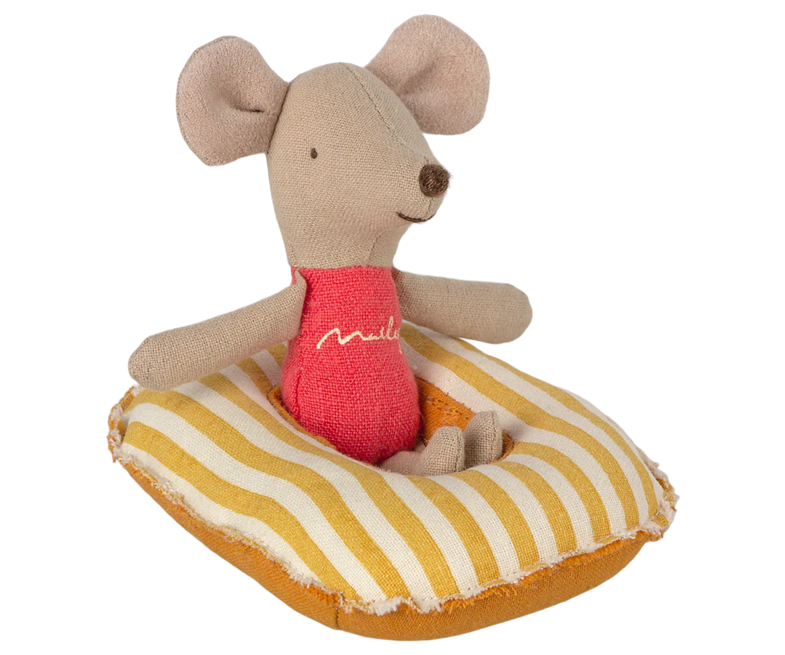 Tempo de férias! Um pequeno barco feito de tecido revestido para um visual mais autêntico, não é à prova de água, apenas na tua imaginação flutua na água. Neste barco cabem ratinhos do tamanho baby e little brother/sistter. (ratinho não incluído)