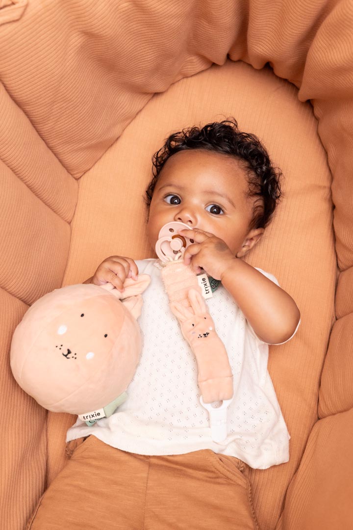 O mais recente amigo do seu bebé está pronto para rolar e o seu bebé vai adorar gatinhar atrás dele. Ele é macio, fofinho e têm um rosto amigável. Têm um sino na barriga e diferentes tecidos para estimulação sensorial.