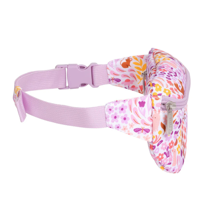 Bolsa de cintura infantil com alça ajustável que também pode ser usada ao peito. Uma carteira e o telemóvel cabe perfeitamente no compartimento frontal, tem também um bolso na parte de trás com fecho de correr, ideal para pequenos objetos.