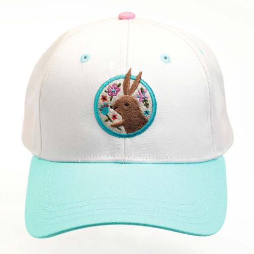 Este boné de algodão com um desenho de um coelho é um acessório de moda obrigatório.