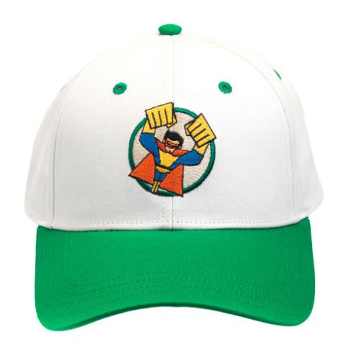Este boné de algodão com desenhos de super-heróis é um acessório de moda obrigatório.