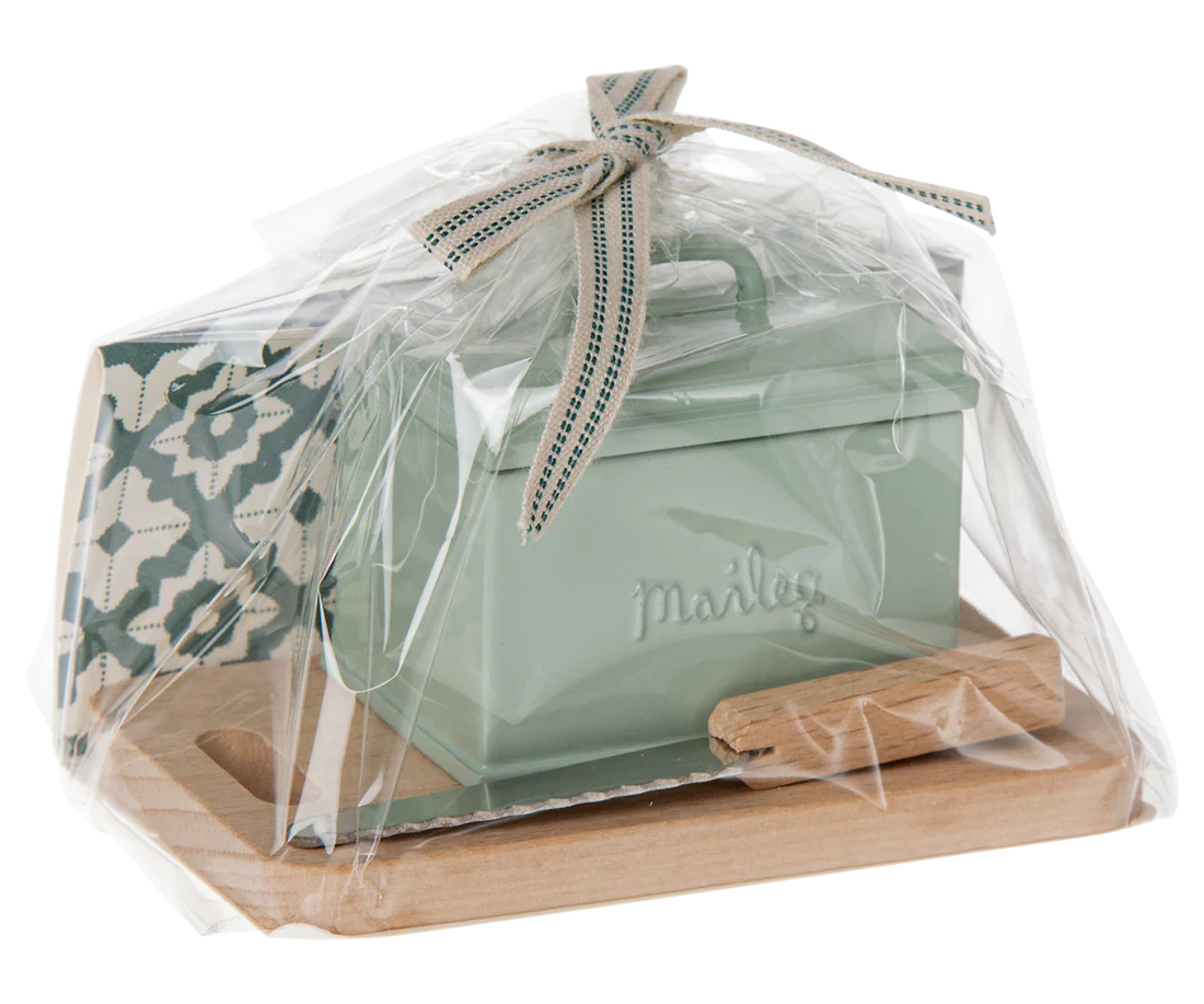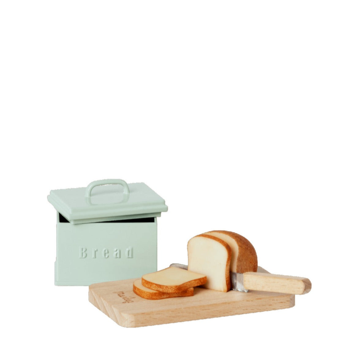 Este conjunto de brincar em miniatura inclui uma caixa do pão, meio pão e 3 fatias, uma tábua de cortar e uma faca. É perfeito para começar a brincar na cozinha em miniatura.