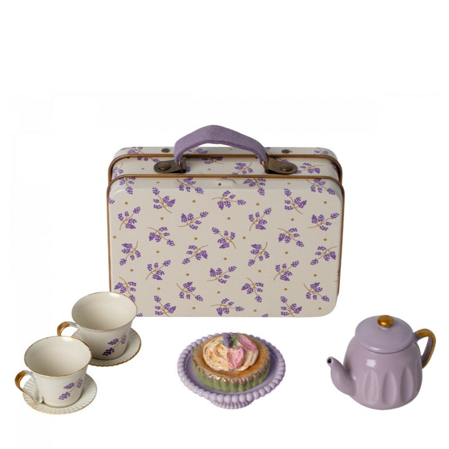 Este conjunto é perfeito para os teus amigos ratinho, com todos os elementos necessários para uma tarde aconchegante de chá e bolinhos. Vem embalado na mítica malinha de metal, com um padrão clássico Maileg