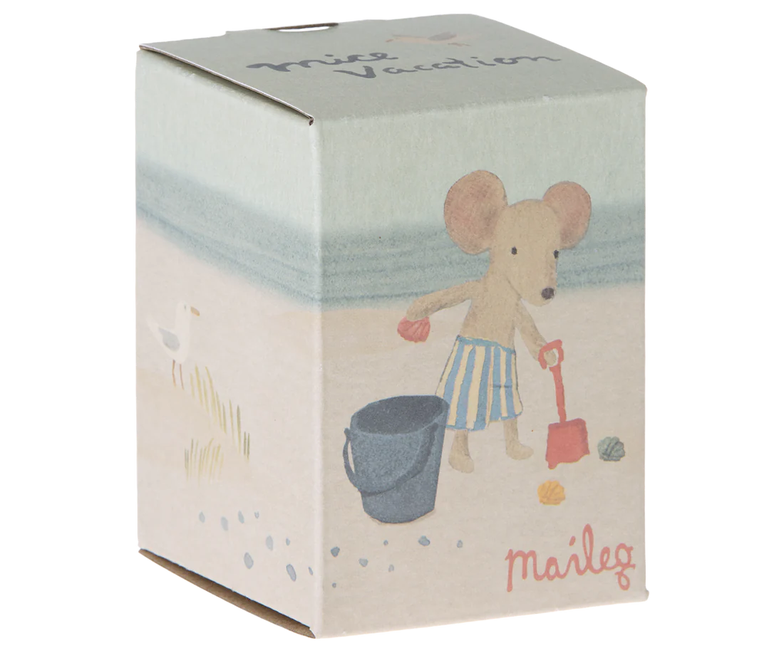 É tempo de férias! Este conjunto é ideal para momentos divertidos na praia. Inclui um balde, uma pá e um brinquedo em forma de concha em miniatura (ratinho não incluído)