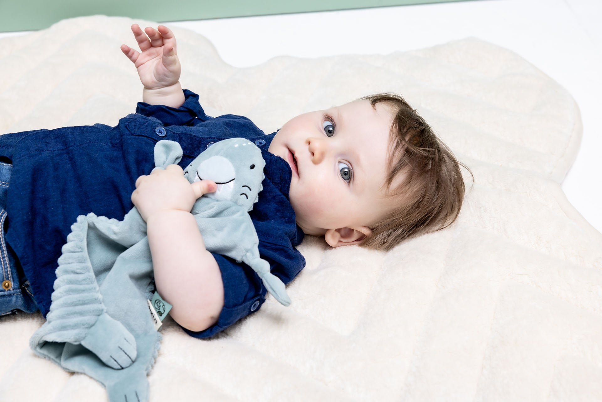 Um companheiro amigável para todas as aventuras do seu pequeno, este paninho de conforto certamente irá tornar-se num favorito. Possui um pequeno nó para manter a chucha do bebé segura, um rostinho sorridente e um corpo super macio feito com veludo cotelê reciclado.