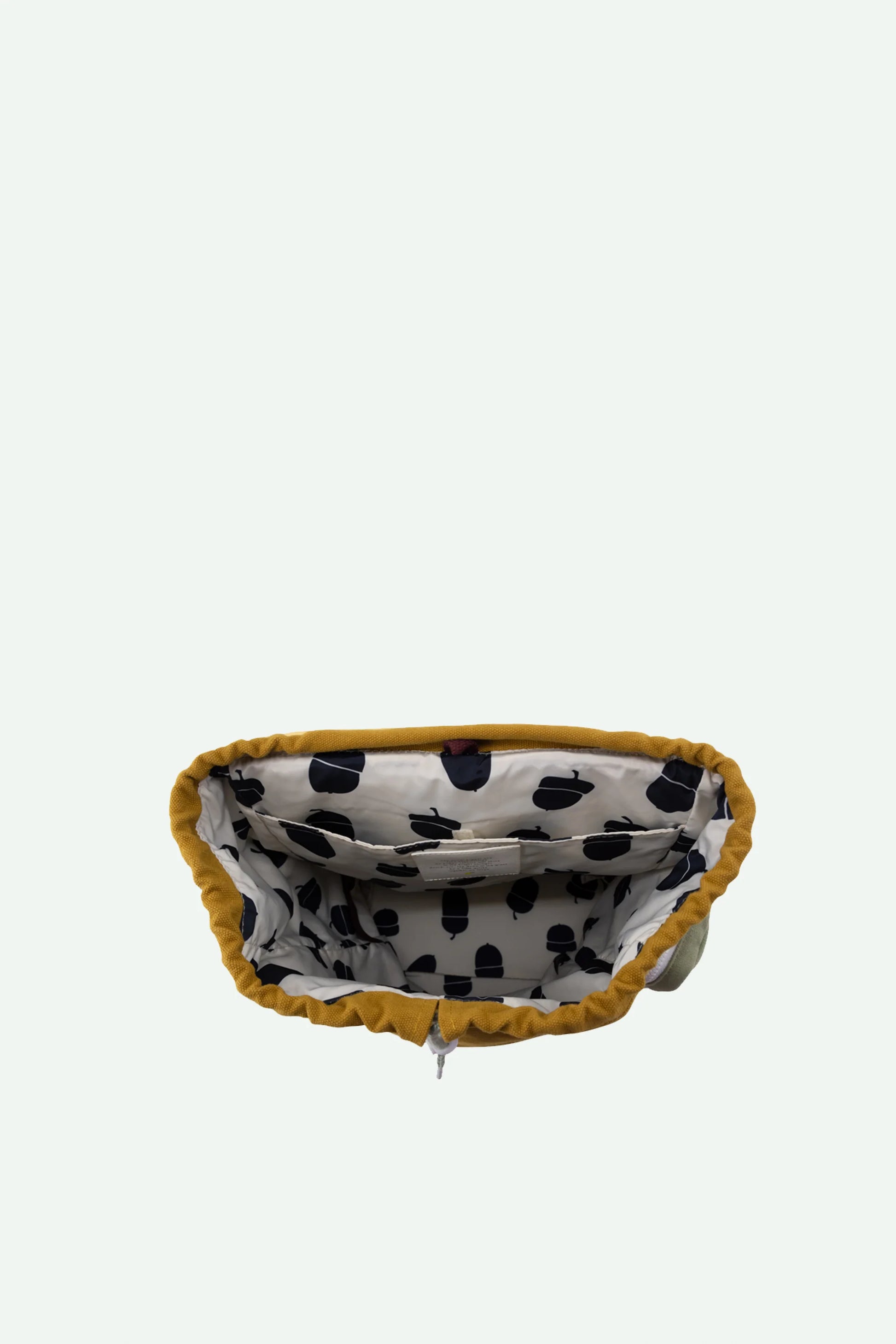 Esta mochila está pronta para te acompanhar em qualquer aventura! Apresentamos uma nova qualidade: lona firme e resistente. A mochila possui dois bolsos laterais espaçosos. O fecho é feito com cordão e aba na parte superior. O forro tem estampa de bolotas e é impermeável. Na parte interior encontrará um porta-garrafas elástico e um bolso na parte de trás com fecho em velcro. Na etiqueta para identificação pode escrever seu nome e informações de contato.