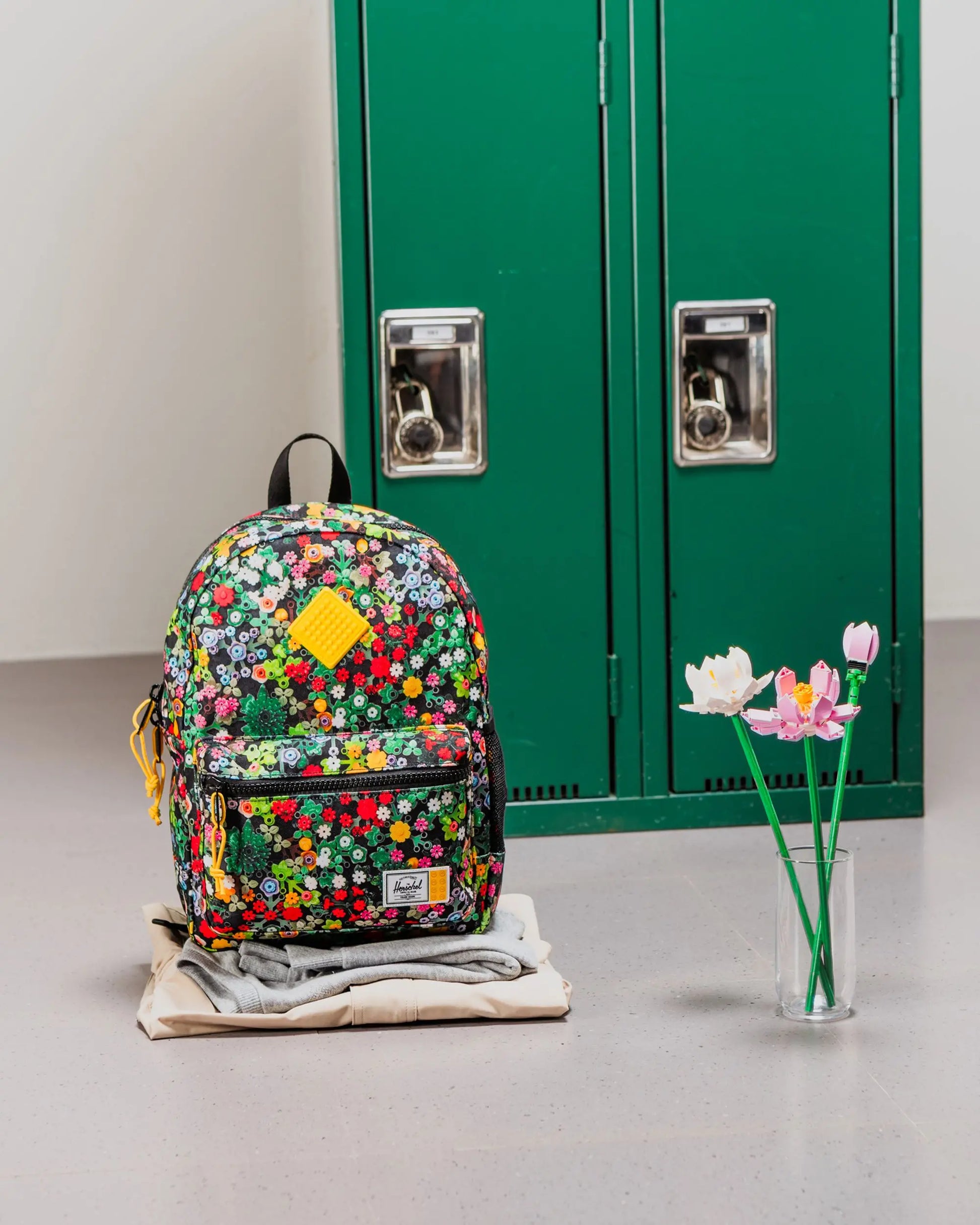 Coleção Herschel x LEGO®. Prepare-se para a hora da brincadeira com a Mochila Infantil Herschel Heritage™ de edição limitada, reinventada com padrão e etiquetas LEGO® personalizadas. Com um interior espaçoso, ela transita facilmente da escola para a brincadeira, com vários bolsos e alças acolchoadas confortáveis para crianças de 8 a 12 anos.