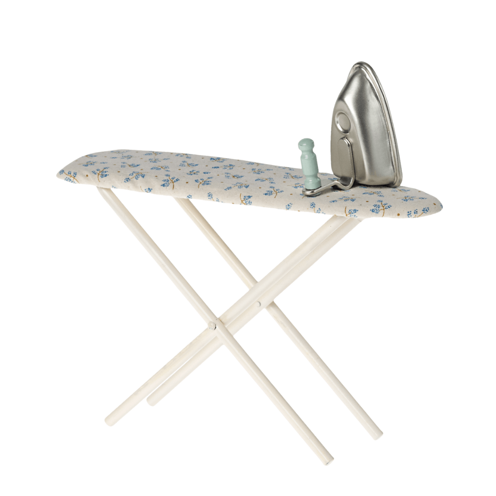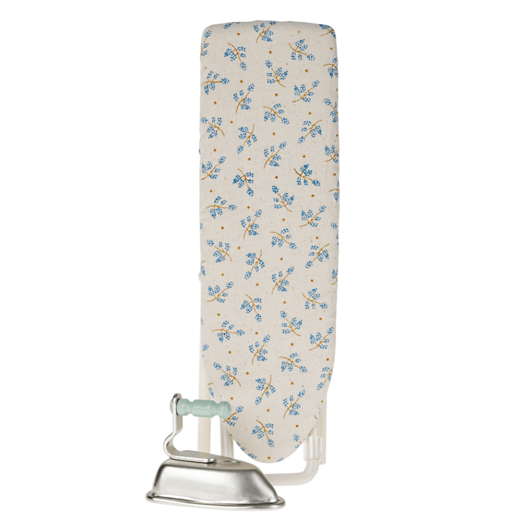 Para que o espaço de lavandaria esteja completo tens de ter uma tábua e um ferro de engomar. Este conjunto vai tornar a brincadeira ainda mais autêntica. A tábua é feita de metal e coberta com um tecido único da Maileg.