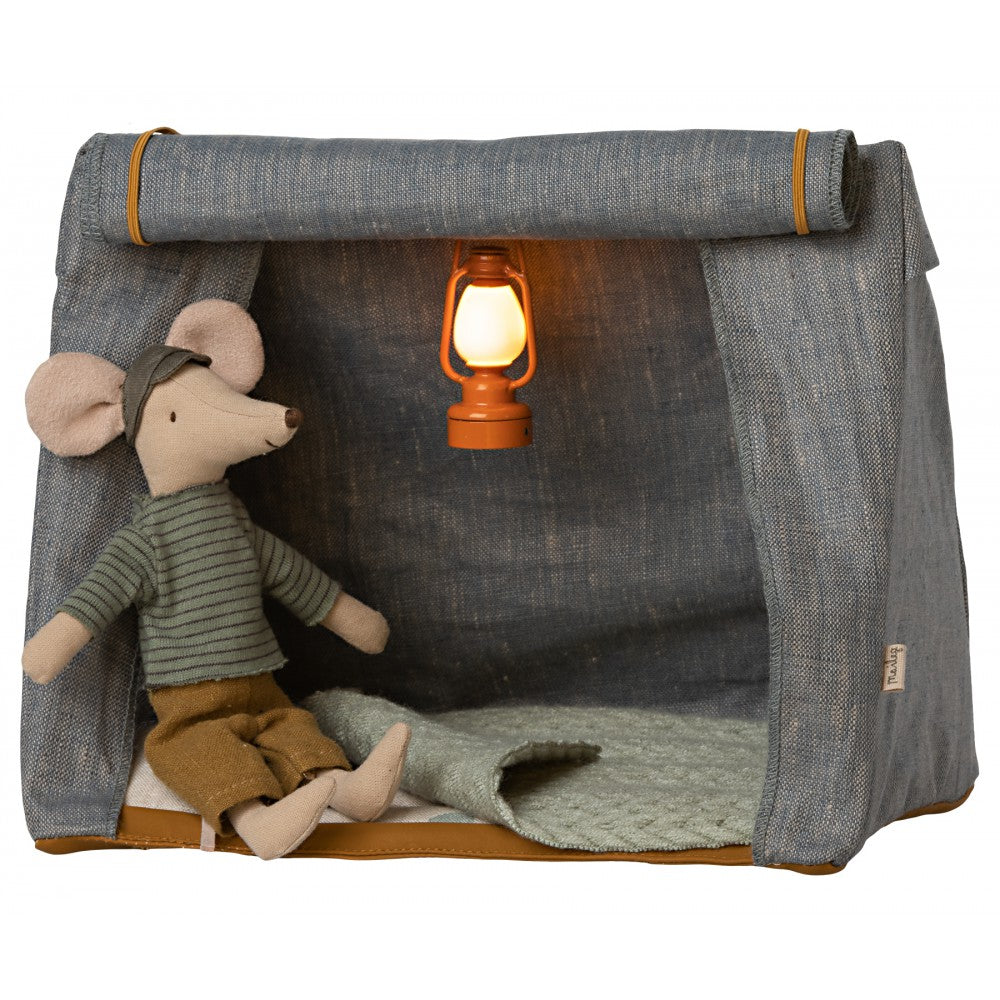 Leva o teu ratinho a acampar e dormir sob as estrelas nesta tenda. A mantinha vai aquecer o teu ratinho durante a noite, inclui uma manta e uma almofada. (ratinho e lâmpada não incluídos)